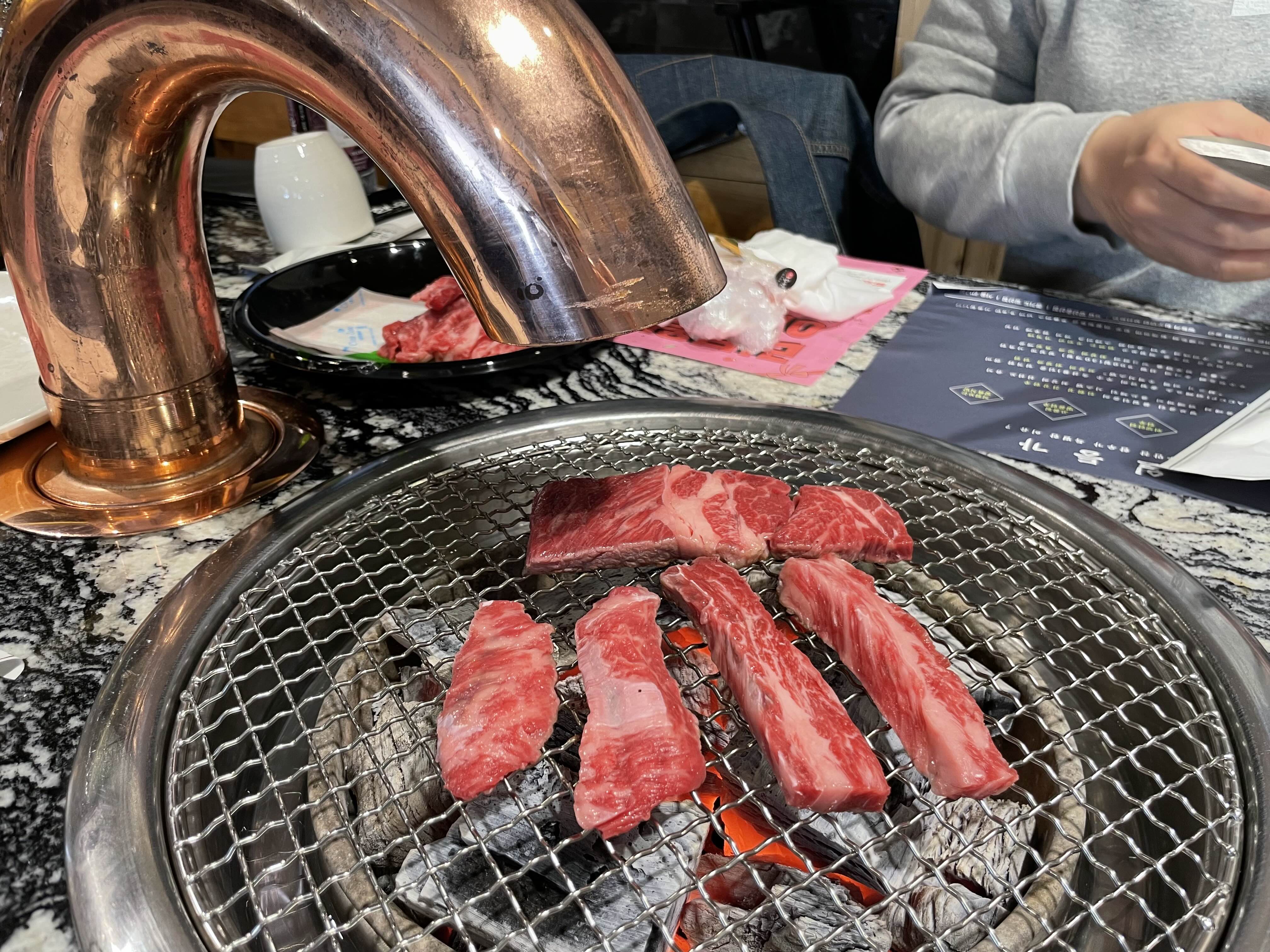 한우만찬 입구 정육점에서 신선한 한우를 구입했습니다 어른 2명 아이 1명이 먹을 수 있는 양을 구매했는데요. 약 육 만원치 샀던 것 같아요. 양껏 먹을 수 있는 양은 아니었지만 점심에 먹기 딱 좋았던 것 같고 더군다나 한우만찬에서는 샤부샤부를 같이 주기 때문에 충분했던 거 같습니다. 저희가 좋아하는 등심과 갈빗살 위주로 구매를 했어요. 아이도 정말 잘 먹어 줘서 기분이 좋았답니다. 저희 아이는 특히 숯불로 석쇠를 이용해서 구운 소고기를 정말 잘 먹습니다. 입이 짧은 편인데도 이 메뉴는 잘 먹고 좋아해 줘서 자주 외식을 하러 오는 메뉴입니다.