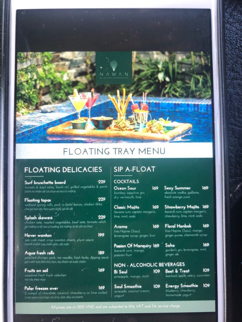나만리트리트 헤이헤이레스토랑에서 조식을 먹고 저와 아이는 리조트를 한 바퀴 돌고 다시 방으로 왔어요. 헤이헤이레스토랑 바로 앞에 바다로 이어지는 인피니티풀이 있었어요. 객실에 있는 수영장을 이용하느라 이곳은 이용을 안 했었어요. 조식 먹고 방으로 가서 플로팅트레이도 한번 해보았네요.