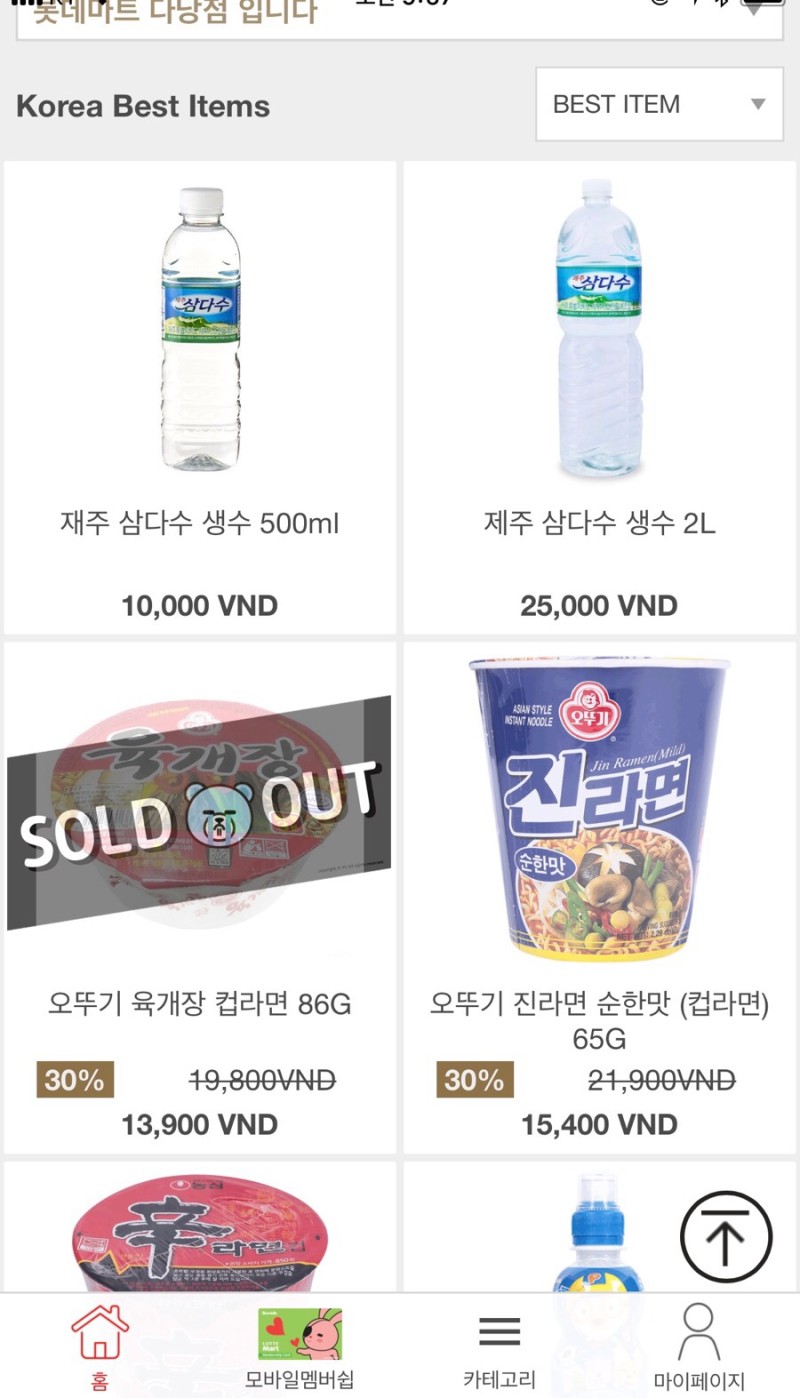 검색하다가 알게 된 꿀팁, 베트남 롯데마트 앱이 있었어요! 주문하면 현지 호텔로 가져다줍니다! 한화로 7,000원 정도면 무료배달이 된다고 하네요.