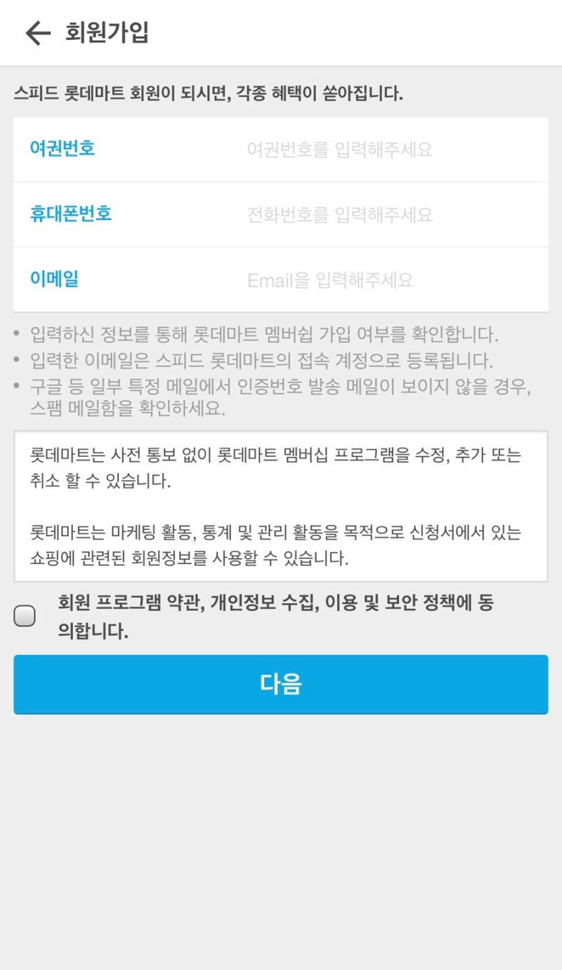 * 회원가입을 위해서는 여권번호와 휴대폰번호, 이메일이 필요합니다.