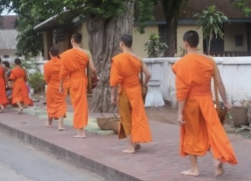 라오스에서는 매일 아침 탁발 의식이 행해집니다. 탁발이라는 것이 좀 생소할 수도 있는데요. 탁발이란 승려들이 걸식으로 의식을 해결하는 방법으로, 불교에서 출가 수행자들이 지켜야 할 규율인 12 두타행 중 걸식과 같은 뜻으로 쓰인다고 합니다. 발이란 음식을 담는 그릇인 발우를 가리키는 것, 따라서 탁발이란 걸식하여 얻은 음식을 담은 발우에 목숨을 기탁한다는 의미입니다.