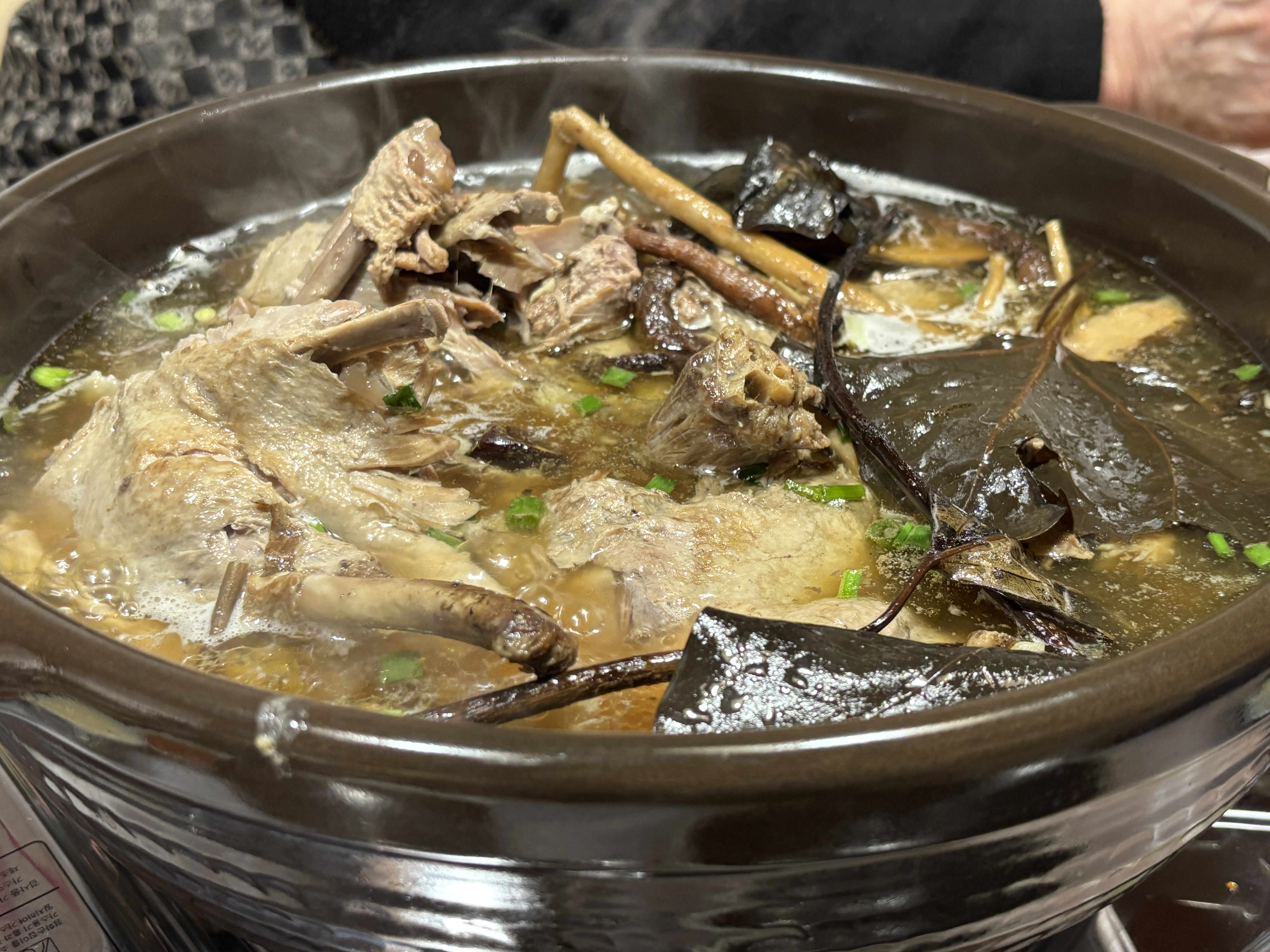 먼저 나온 오리백숙은 국물부터 진했어요. 인위적인 맛이 아니라 오래 푹 끓여낸 깊은 맛이 느껴졌습니다. 국물 한 숟갈 떠먹는 순간 속이 따뜻해지는 느낌이 들더라고요. 부모님도 “국물이 좋다”면서 계속 드셨어요.