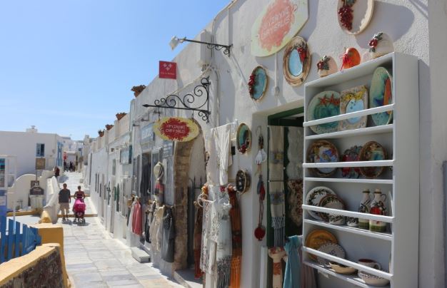 탁 트인 하늘과 바다, 따뜻한 햇살과 기분 좋은 바람, 그냥 걷기만 해도 정말 행복했던 시간이었습니다. 저희가 묵었던 안드로니스 럭셔리 스위트는 이아마을에 위치해 있어요. 걸으면서 저녁에 들렀던 절벽 위 호텔 레스토랑도 보였어요. 작은 슈퍼에 들러서 미니사과였나 복숭아였나 하여튼 작은 과일을 하나 사서 먹어보았는데 생각보다 맛이 없고 좀 시고 맛이 없었던 걸로 기억해요.