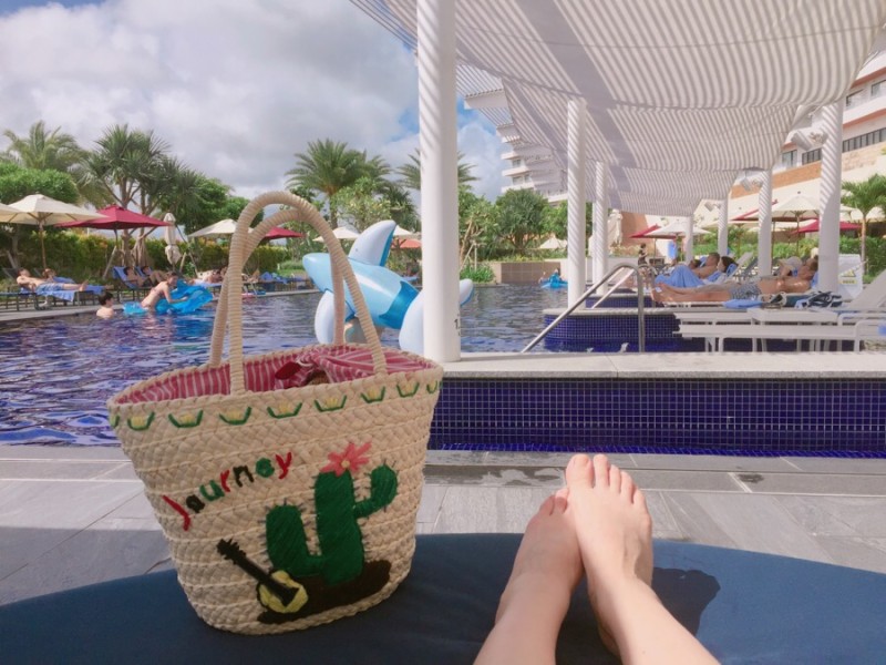 오키나와 힐튼 리조트, 휴양여행의 묘미 수영장을 이용했었어요. 튜브 위에서 두둥실 떠다니는데 정말 힐링 그 자체의 시간이었답니다.