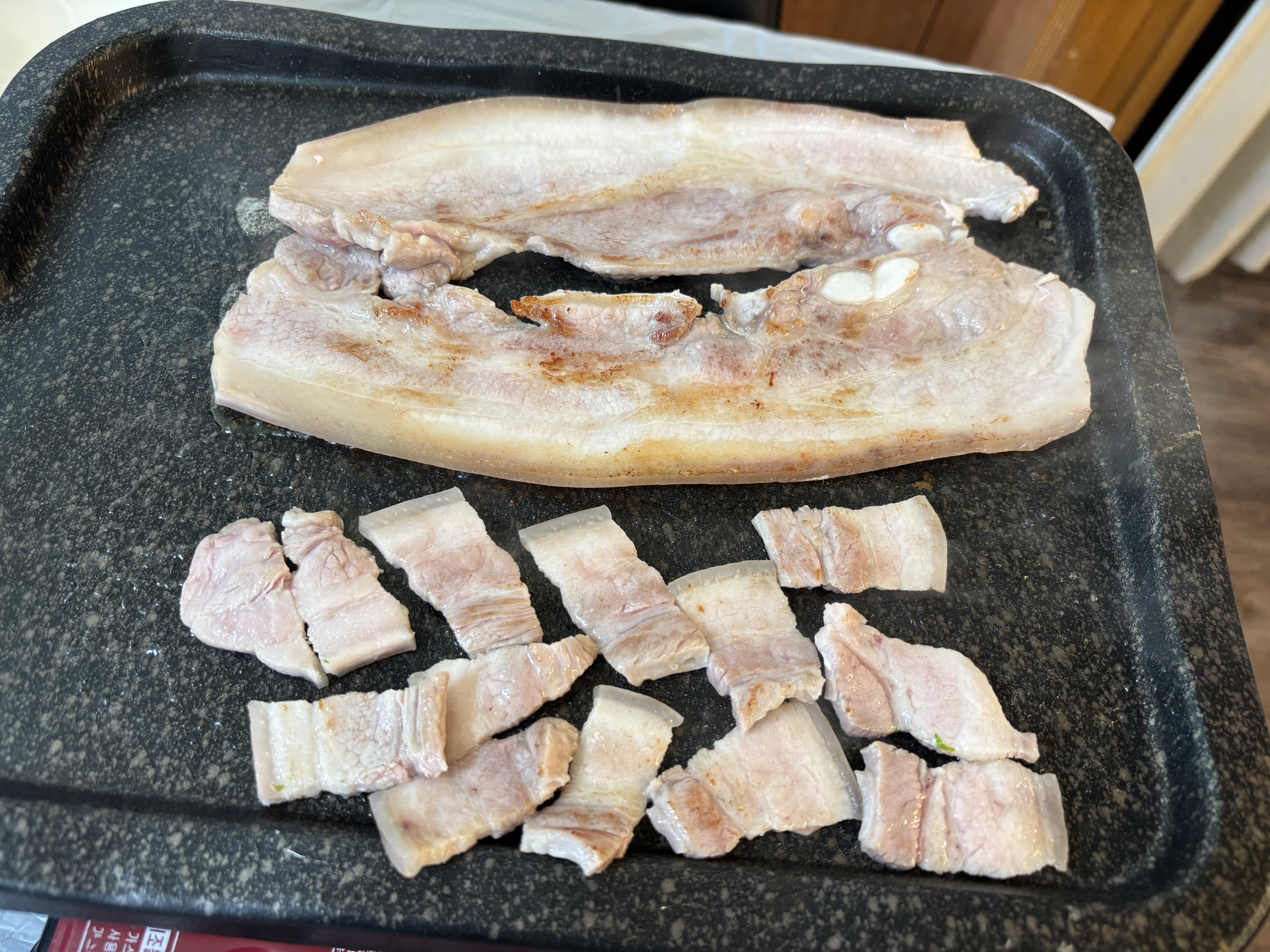 미나리를 이렇게 듬뿍 올려 먹는 건 처음이었는데, 향이 정말 신선하고 강하지 않아서 삼겹살이랑 잘 어울렸어요. 고기의 고소함에 미나리 향이 더해지니까 느끼함이 확 줄어듭니다.