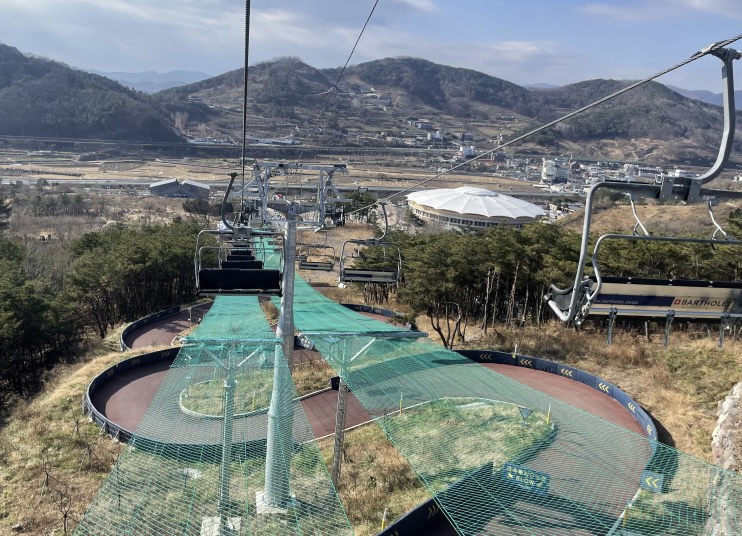 루지가 처음인 언니가 루지를 경험해 보기로 했고 엄마랑 저는 리프트를 타고 위로 올라가기로 했어요. 처음에 갈 때는 세 명이서 같이 리프트를 타고 올라갔는데 고소공포증 있는 언니는 리프트조차 무서워했습니다. 리프트를 타고 정상으로 올라가서 바라 보니 경치가 참 아름다웠어요. 루지를 못 탄 엄마의 마음을 좀 달래 주는 듯했습니다. 정상에 있는 카페에 들어가서 예쁜 사진도 찍고 따뜻한 음료를 마셔서 몸도 녹이고 잠시 쉬다가 언니는 루지를 타고 내려왔고 저랑 엄마는 다시 리프트를 타고 내려왔습니다. 엄마 손을 꼭 잡고 대화를 하며 내려오는 그 시간도 정말 소중했습니다.