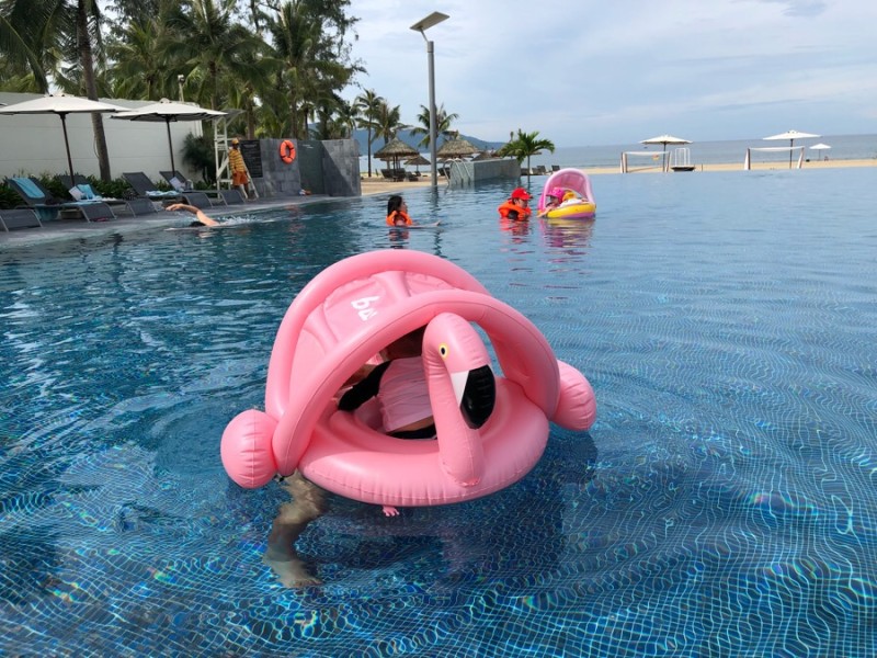 나만리트리트에서는 풀빌라라 야외 인피니티풀을 이용하지 못했는데요. 그래서 풀만리조트에서는 야외수영장을 이용했어요. 바로 앞에 바다가 있었지만 아직 아이와 함께 바다수영을 하기는 좀 무리일 것 같았어요.