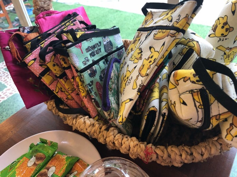 계산할 때 시원한 음료와 과자를 주었고 그리고 작은 가방을 골라가져 가라고 했다. 그다지 예쁜 건 없어서 대강 골라왔는데 여행 내내 여권이랑 돈 넣고 진짜 편하게 잘 사용하고 다녔네요.